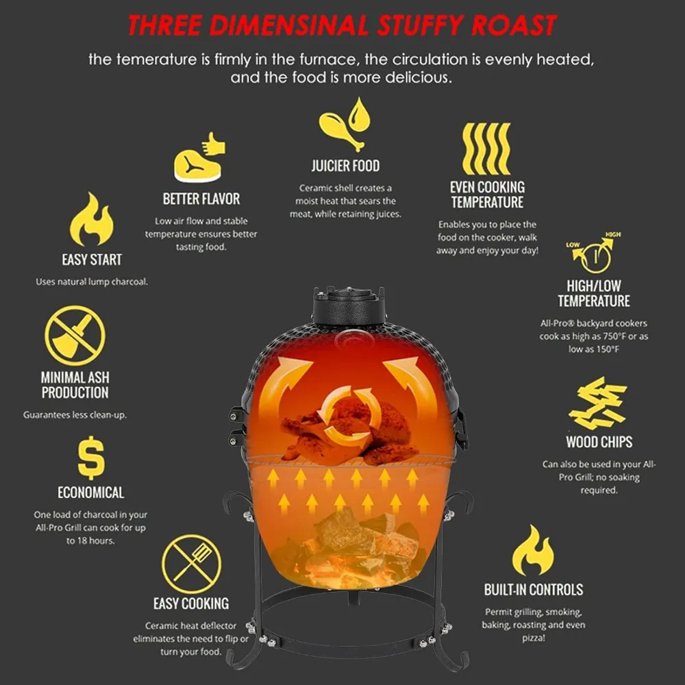 - Ceramics Wall A classic style: Grill must have ceramics wall as it is one kind of the best insulation material. Ceramic wall has a tremendous heat storage capacity, which can absords the heat for hours efficiently and keep the temperature between 50 - 800 degrees!
