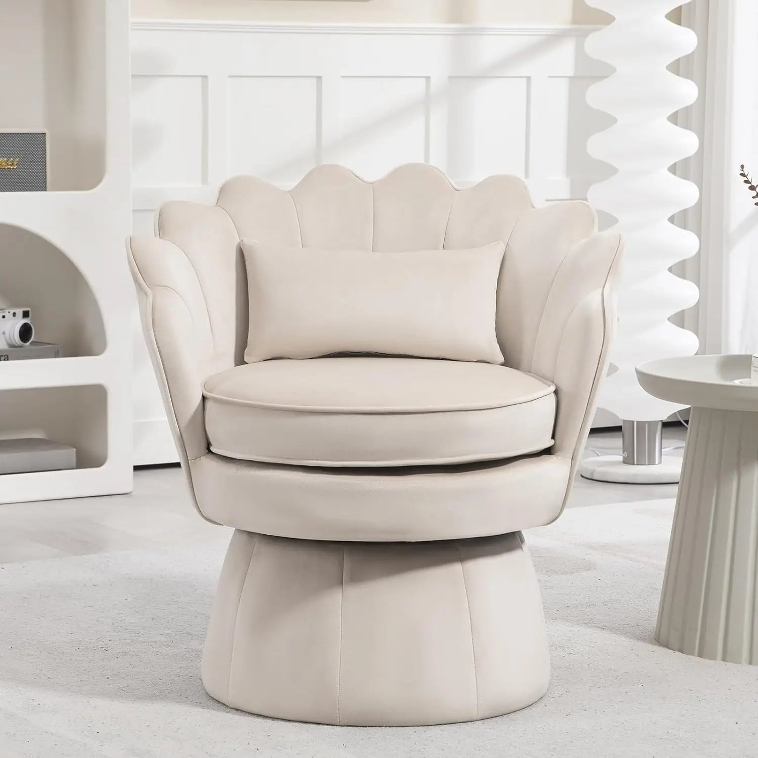 360° Swivel Accent Chair, Mid-Century Modern Velvet Barrel Chair, Comfy Shell Shape Arm Chair with Lumbar Pillow for Living Room