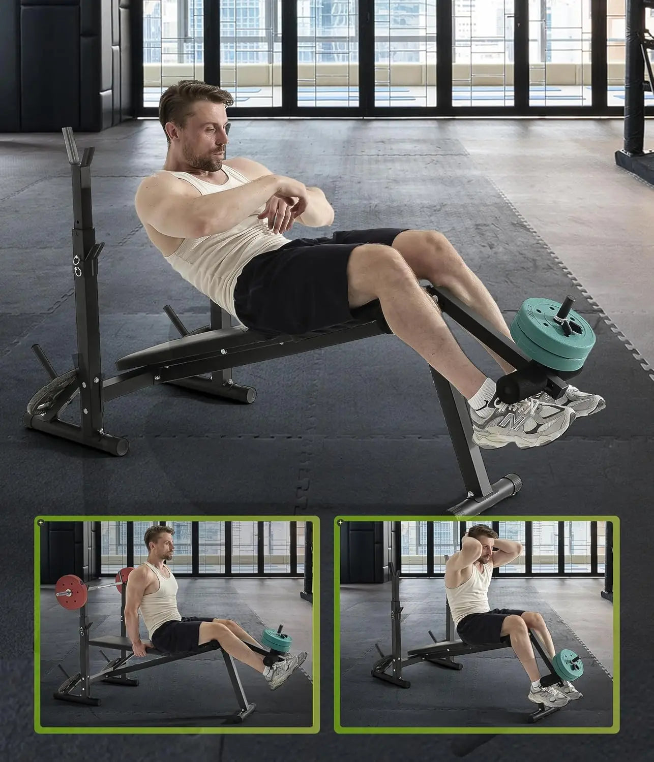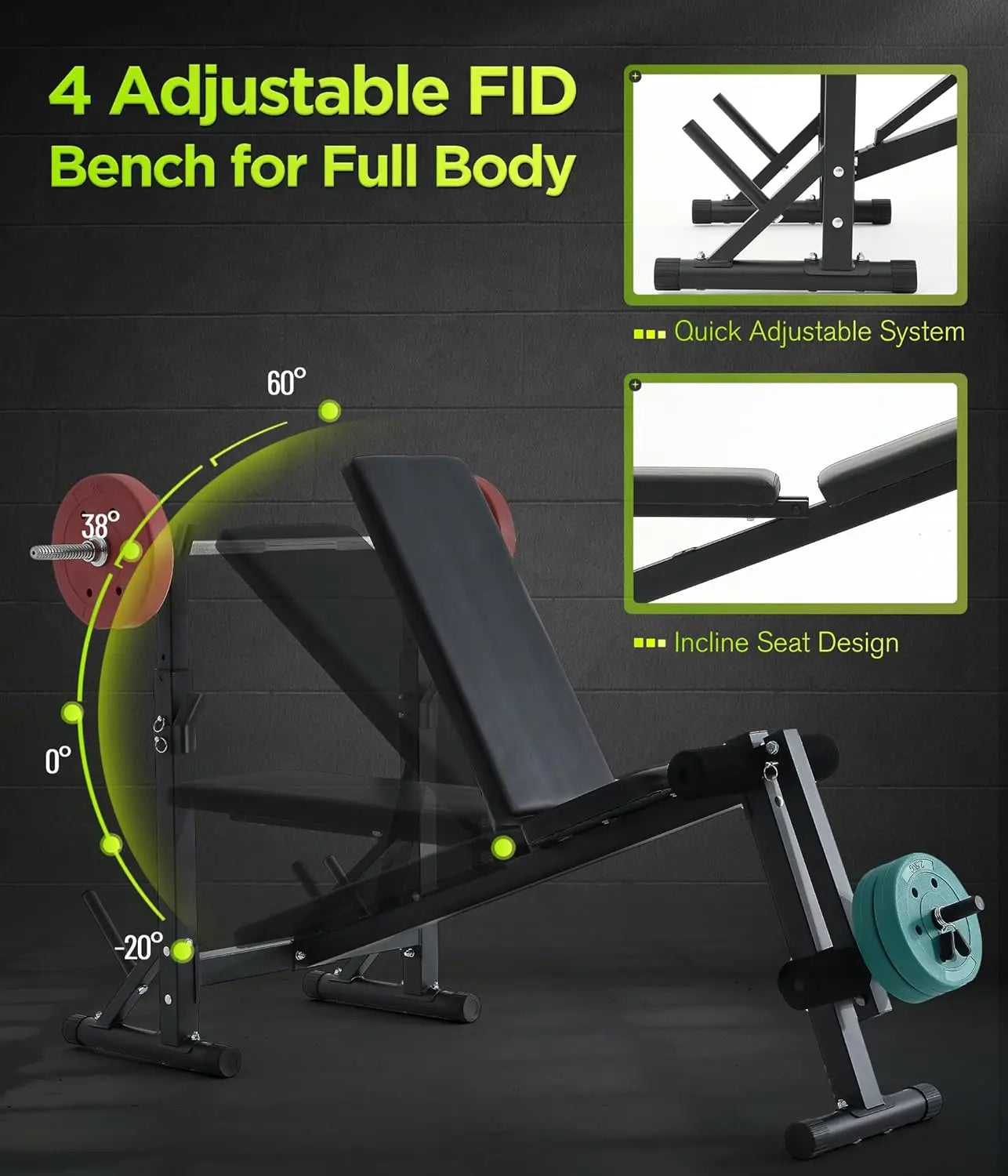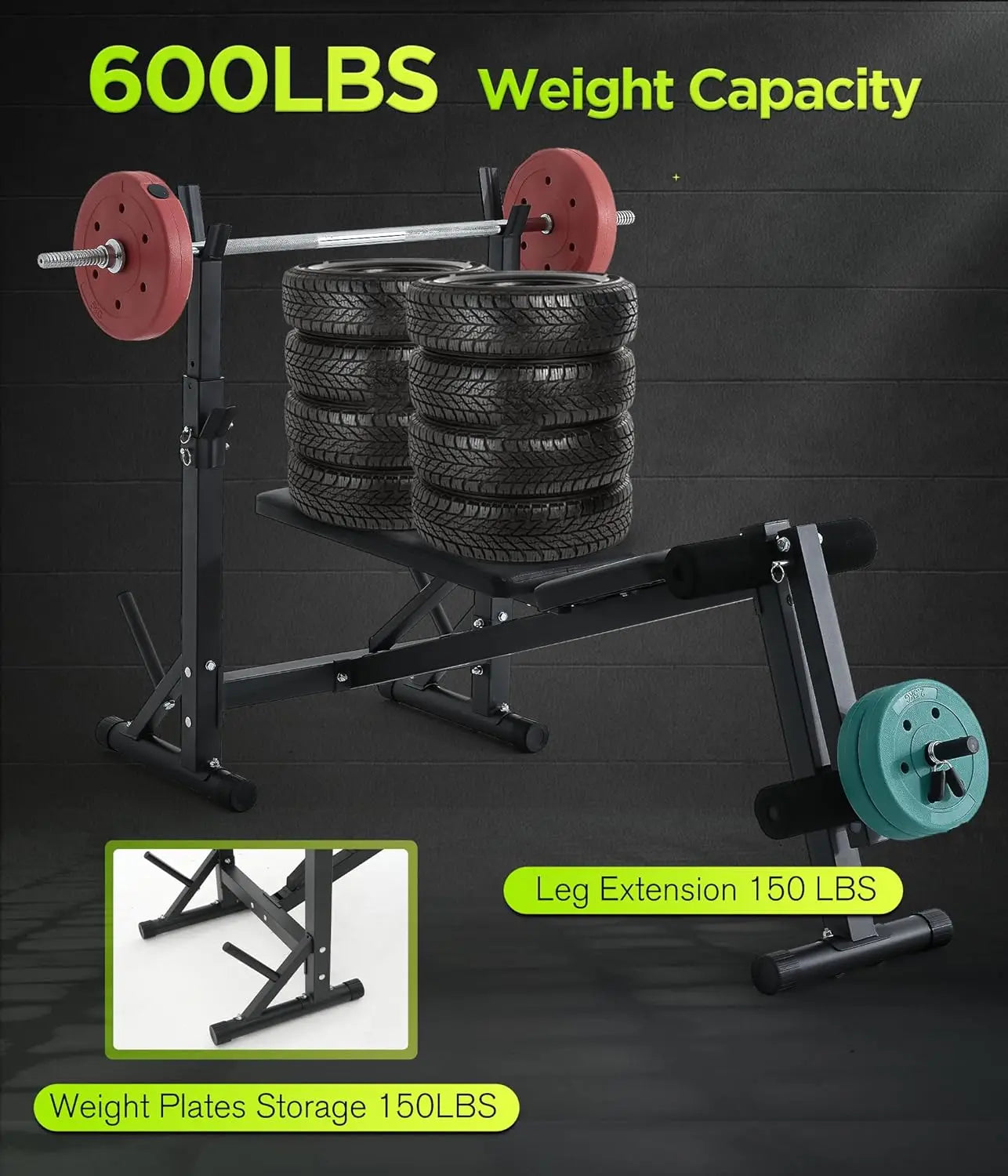 600LBS Incline Weight Bench Set with Rack, 4-in-1 Adjustable Workout Bench with Leg Extention for Bench press,Curl and Ab Workou