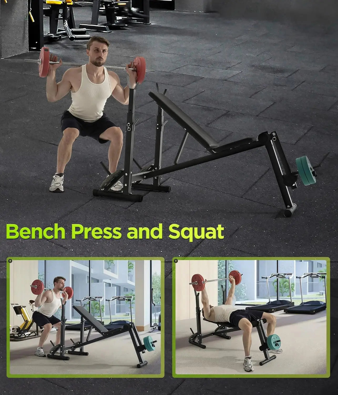 1. 【4-IN-1 WORKOUT BENCH】RUNFREELY total-body workout bench is versatile and complete combo bench for homegym. This combo bench is a bench press rack, incline bench,decline bench, seated leg developer all in one.You can do the bench press, sit up, ab curl, leg curl and so on.