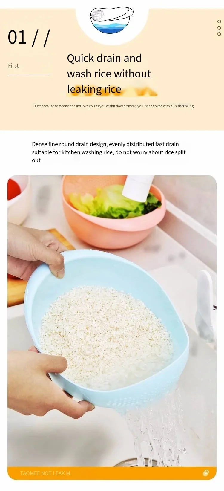 Kitchen washing rice magic washing rice sieve washing rice basin fine hole does not leak rice kitchen household washing vegetabl